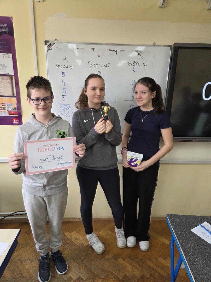 Stariji učenici 5.a, 6.a, 6.b, 7.a i 7.b razreda sudjelovali su u kvizu o sigurnosti na internetu, pri čemu su učenici 7.a i 7.b razreda odmjerili snage u znanju o sigurnom i odgovornom korištenju interneta. Kviz su vodile nastavnice Marija Ivanković i Mandica Zlosa. Putem alata Mentimeter učenici su iskazivali vrijeme koje provode na internetu, svoje omiljene aplikacije, vrste nasilja na internetu te davali savjete za sigurnije ponašanje u digitalnom svijetu.