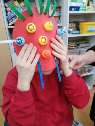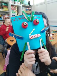 Izrađivali su maštovite maske od geometrijskih likova, prepoznavali krugove, trokute, kvadrate i pravokutnike te ih kombinirali u kreativne radove. Suradnjom su ponovili matematičko gradivo na zanimljiv i praktičan način.