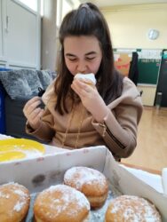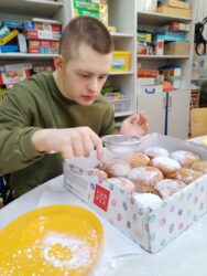 U drugom dijelu vježbali su umjereno posipanje krafni šećerom u prahu, razvijajući preciznost, strpljenje i osjećaj za mjeru. Pomagali su jedni drugima i učili o kulturi blagovanja.