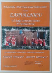 Naši učenici nastupili su u subotu, 20. prosinca 2025. na božićnom koncertu „Radost prosinca“ – „Veselé Vianoce“ u Drevenici u Markovcu Našičkom, koji je organizirala Matica slovačka – SKUU „Franjo Strapač“ Markovac Našički. Učenici Područne škole u Markovcu izveli su slovačke i hrvatske božićne recitacije i prigodne blagdanske pjesme, a njima su se pridružili i učenici matične škole s božićnim tradicionalnim čestitkama na slovačkom jeziku. Školski slovački zbor otpjevao je dječje božićne pjesme Kúpil otec rybu (Kupio je otac ribu) i Svieť nám stromček ( Svijetli nam drvce) a učenici trećeg razreda odrecitirali su hrvatski recital Rodio se Isus. Učenike su pripremile učiteljice Ana Marošević i Zdravka Peić.