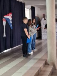 Na početku programa učenik 8. a razreda Antonio Barušić pročitao je ulomak iz zbirke Priče iz Vukovara Siniše Glavaševića te iznio podatke o stradavanju djece u samom Domovinskom ratu te od posljedica ratnih zbivanja na području Republike Hrvatske. Uslijedilo je čitanje sastavka Dok razmišljam o Vukovaru koji je napisala učenica 8.a razreda Zara Rinčić na satu Hrvatskoga jezika pod vodstvom učiteljice Brankice Živković.