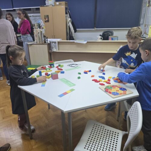 Mlađa braća i sestre naših učenika zabavila su se uz raznovrsne igre i aktivnosti koje razvijaju predvještine pisanja i čitanja. Druženje smo započeli čitanjem bajke Dobroćudni zmaj Dubravka Kastrapelija. Za vrijeme čitanja djeca su rješavala zagonetke koje su pomogle zmaju da pronađe sretno mjesto za život.